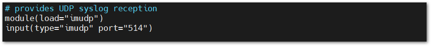 2. Uncomment the following lines to enable UDP-based remote log reception: