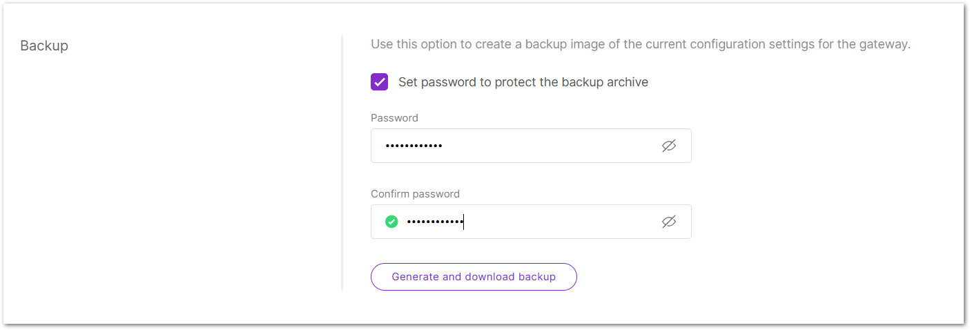 This feature helps maintain operational continuity by preserving all system settings and network parameters, ensuring that your gateway can be quickly restored after maintenance or unexpected issues. Encrypted backups offer strong protection for sensitive deployments, while unencrypted backups allow for faster recovery in controlled environments.