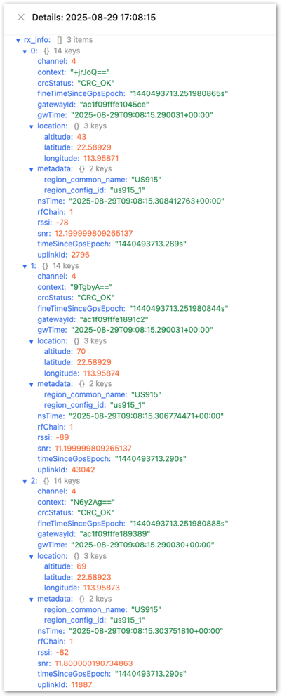- Fine Timestamp: A higher-precision timestamp (nanosecond-level) captured at the gateway’s RF front-end, significantly improves time synchronization.
