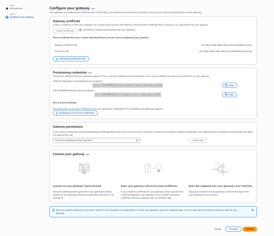 .txtfile for use while configuring the gateway.Choose Submit to add the gateway.