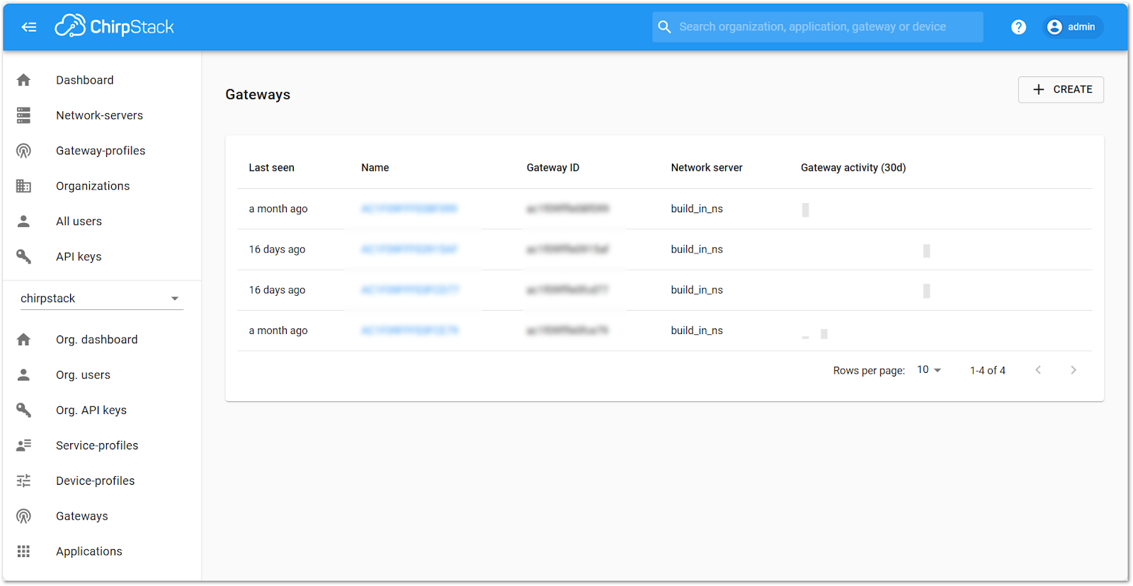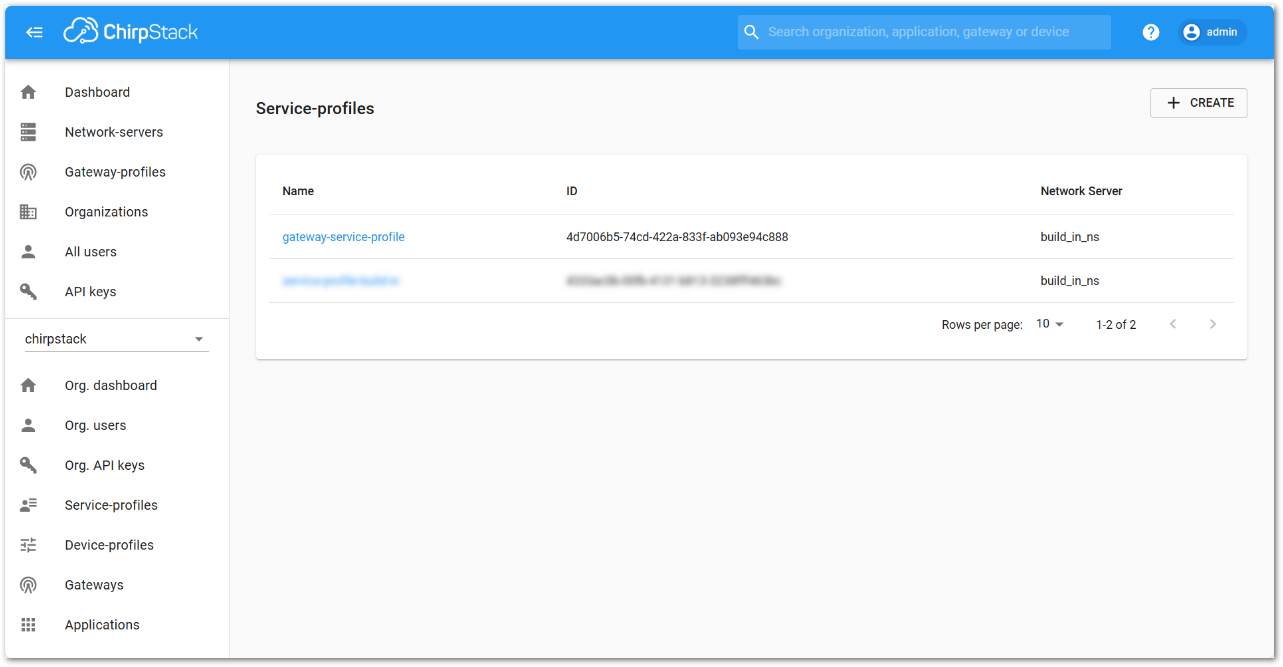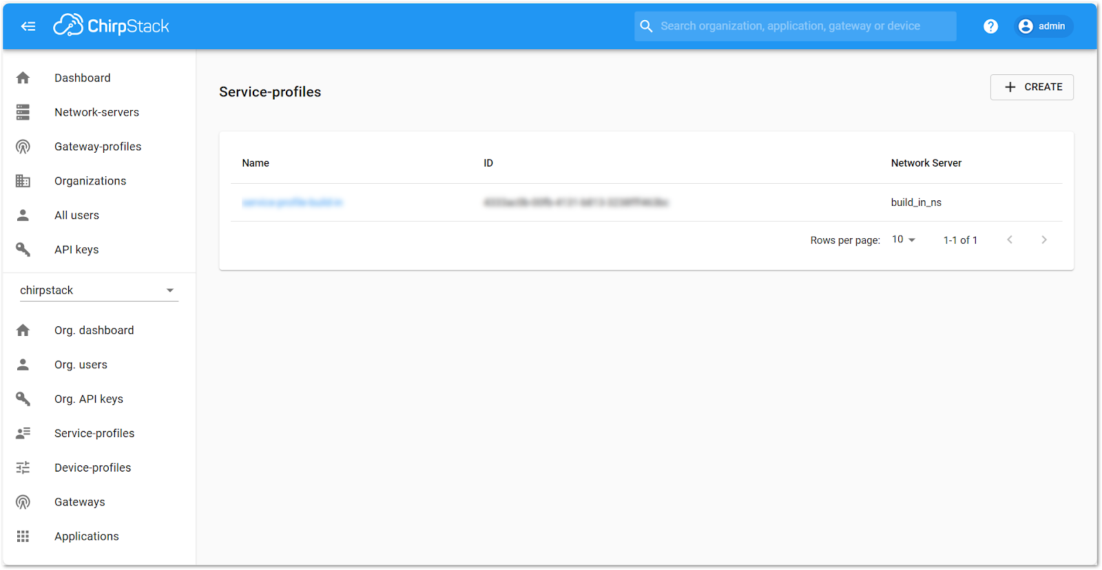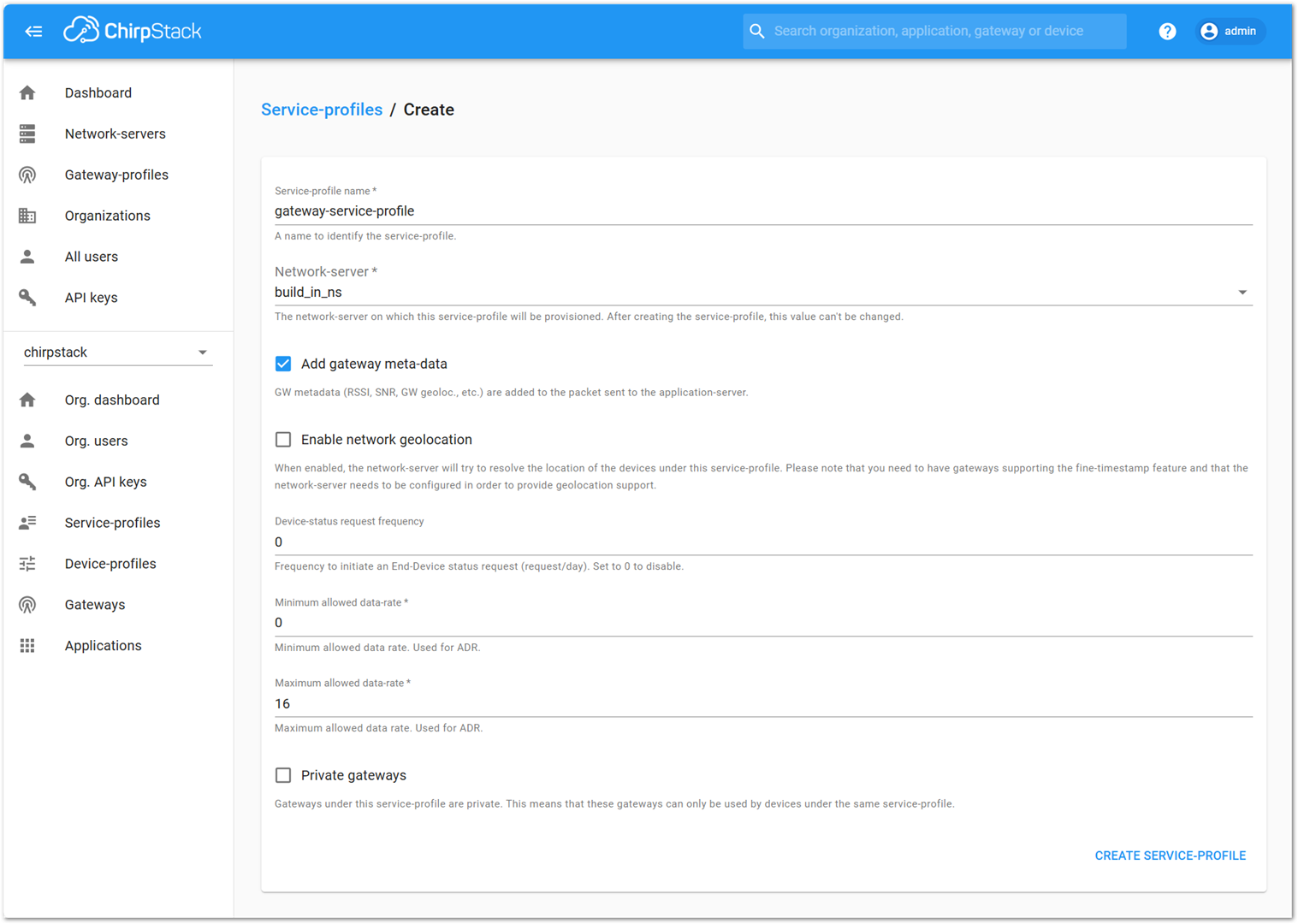 3. Before registering a gateway, you must first create a Service Profile. In the left sidebar, go to Service-profiles and click + CREATE.