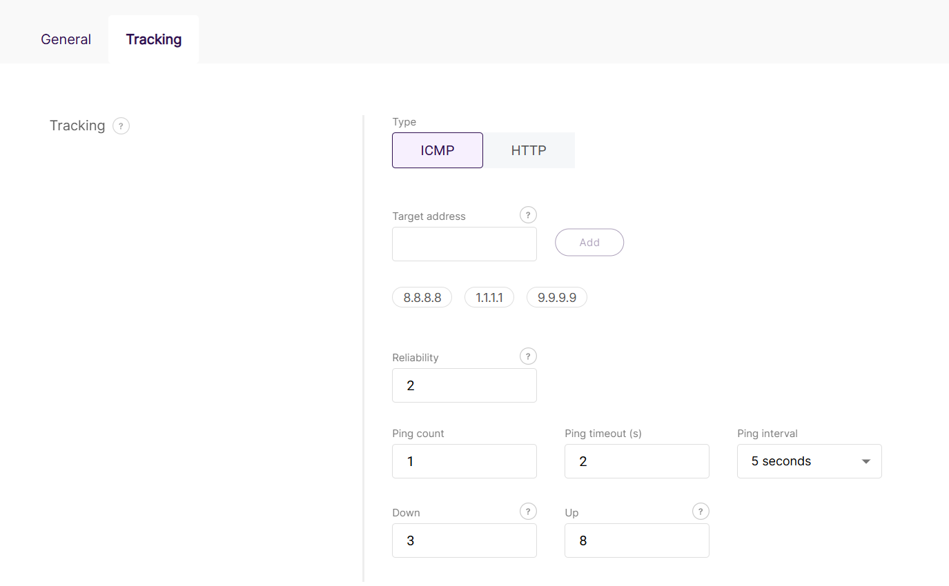 Configure the tracking parameters based on your chosen method (ICMP or HTTP):