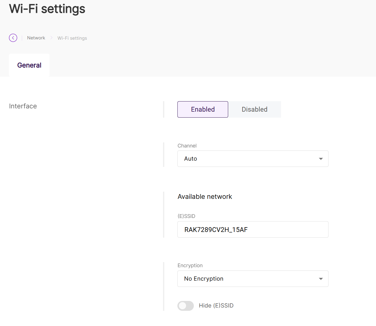 - Hidden: Enable this option to hide the SSID, making the AP invisible to devices scanning for networks (manual entry required to connect).