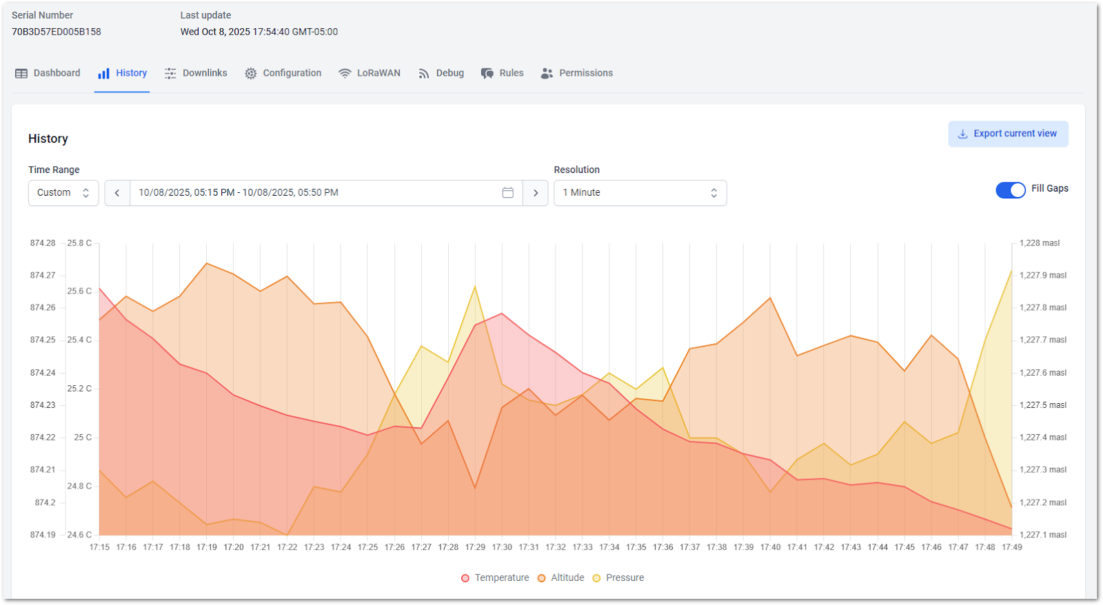 If everything has been set up correctly, you should see a data history display similar to the following image: