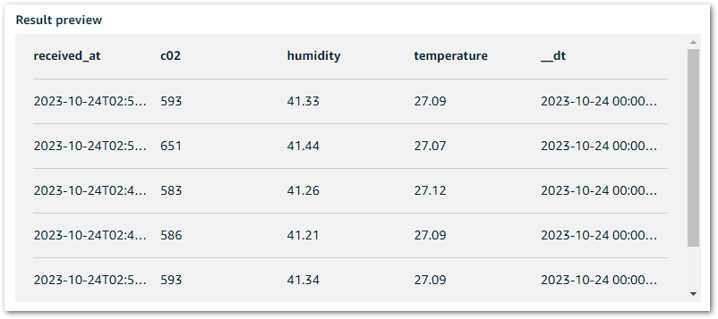 In this implementation, AWS IoT Analytics and Amazon QuickSight are used to visualize data from both TTN and Notehub. Figure 6 shows the dataset generated in AWS IoT Analytics.
