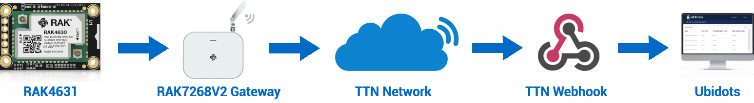 This section explains how Modbus data from the RAK4631 is transmitted to the cloud using either LoRaWAN or cellular connectivity. Each path requires proper network configuration and decoding to ensure that register values are accurately displayed in Ubidots.